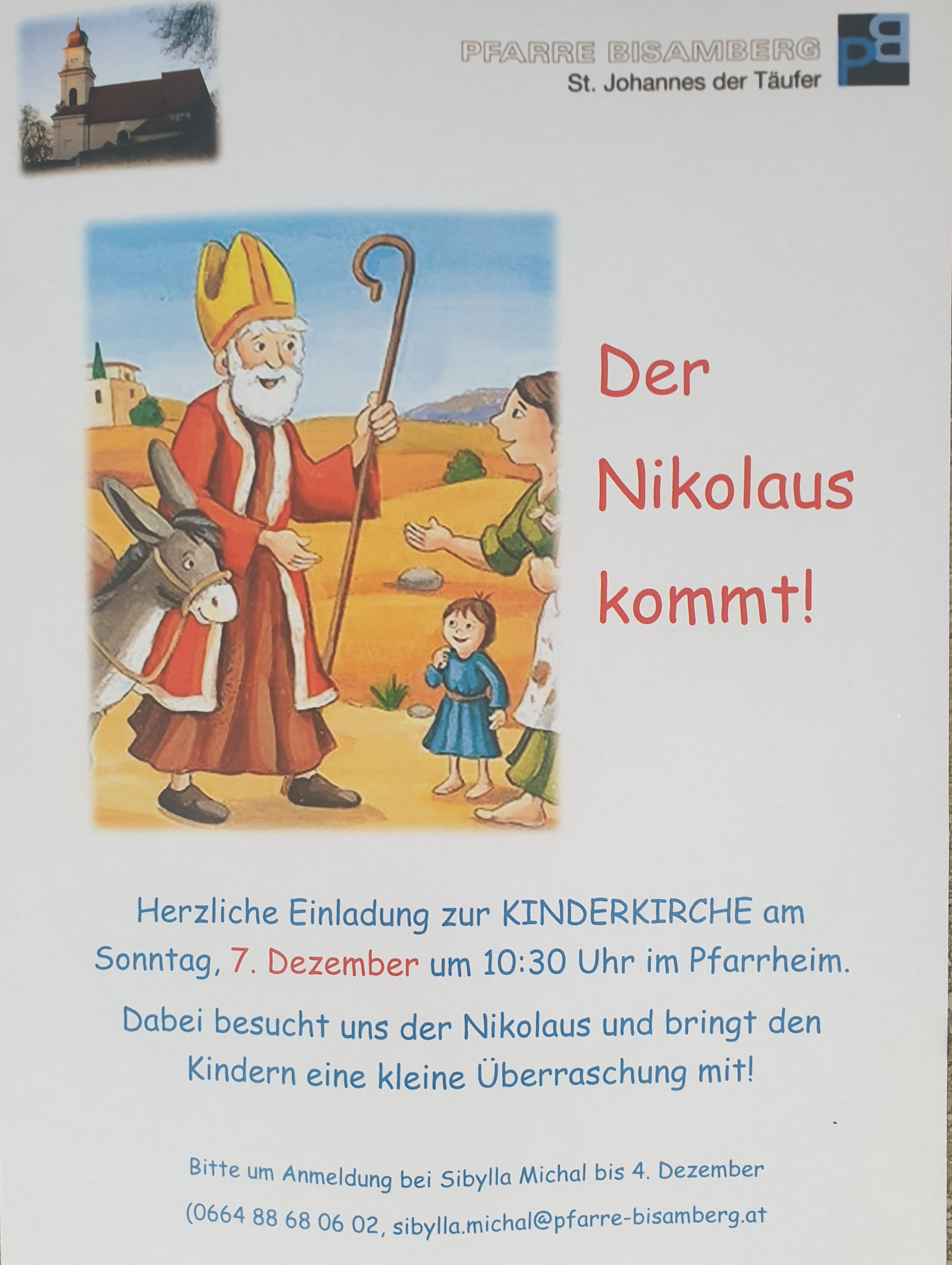 Samstag. 6. Dezember, 18.00 Uhr Pfarrheim